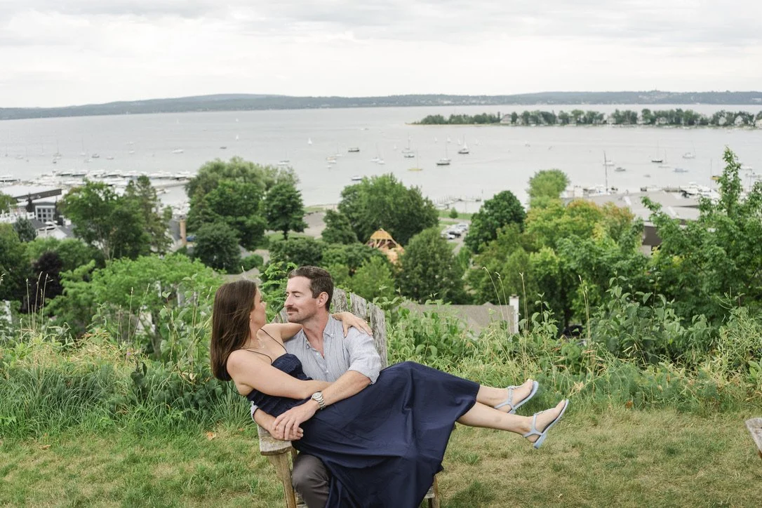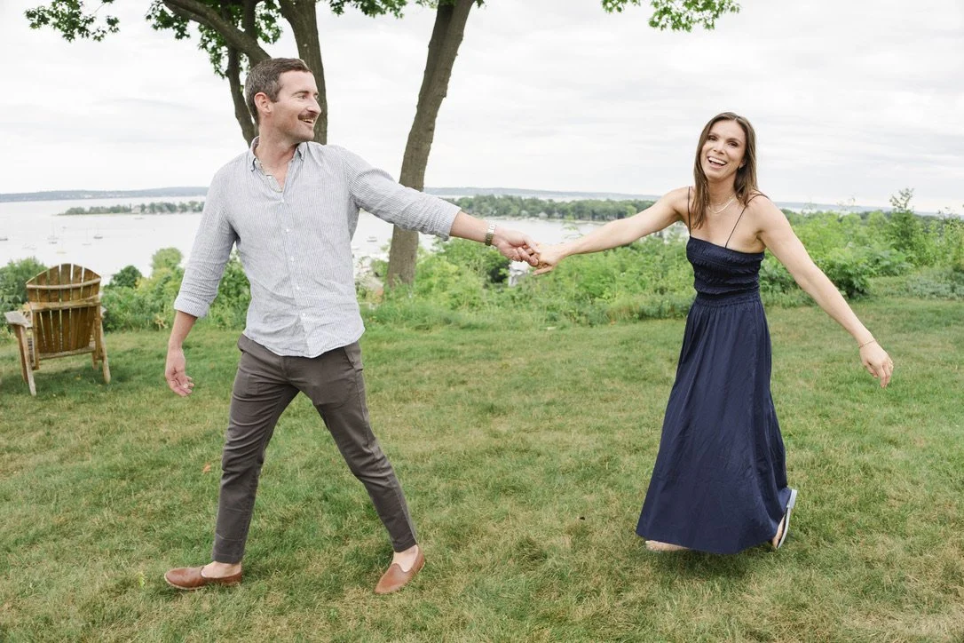 In true Chris fashion, his proposal was thoughtful, personal, and maybe even a little sneaky - bringing Liz to their "secret spot" overlooking the bay in Harbor Springs, Michigan, a special place they've continued to return to over the years. He surprised Liz with an intimate proposal, and whisked her off to their favorite restaurant, Chandler's in Petoskey, where both of their families were waiting to celebrate with (you guessed it) martinis!
